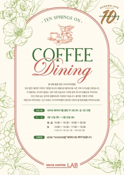이디야커피가 12일부터 이디야커피랩 오픈 10주년을 기념한 봄 시즌 커피다이닝 프로그램 ‘커피다이닝 part.6 - Ten Springs On’을 선보인다.이번 프로그램은 이디야커피의 커피연구소이자 복합문화공간인 이디야커피랩이 지난 10년간 쌓아온 커피의 기준과 전문성