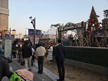 "잠시후 5시30분부터 스노우 샤워가 시작됩니다"11월26일 수요일 오후 5시를 조금 넘긴 시간. 어두워진 하늘 아래 모든 이들이 잠실 롯데월드타워 월드파크 광장에 세워진 초대형 크리스마스 트리에 시선을 빼앗겼다.롯데백화점은 잠실 롯데월드타워에 역대 최대인 800평대의