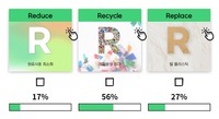 소비자들은 제품 환경성 개선을 위한 3R 전략(Reduce_원료사용 최소화, Recycle_재활용성 증대, Replace_탈 플라스틱) 중 가장 효과적인 방법으로 재활용성 증대(56%)와 함께 탈 플라스틱(27%), 원료사용 최소화(17%)를 꼽고 있는 것으로 확인됐다