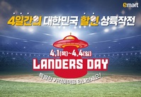 이마트가 4월 1일부터 4일까지 4일 동안 올 상반기 가장 큰 행사를 선보인다. 1+1 행사만 80여종에 달하며, 총 행사품목만 500여종이 넘는 대규모 행사다.랜더스데이는 신세계그룹 야구단 ‘SSG랜더스’ 창단/개막을 기념하여 진행하는 행사로, 일정은 SSG랜더스 개