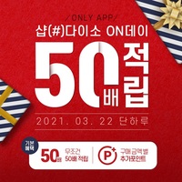 ◇ 아성다이소, ON데이 이벤트…2 2일엔 포인트 50배 적립아성다이소가 다이소 전용 모바일 쇼핑몰인 샵(#)다이소를 통해 ‘ON데이 이벤트’ 를 진행한다.샵(#)다이소에서만 진행되며, 오는 22일하루 동안 샵(#)다이소 구매 고객 전원에게 조건 없이 다이소 멤버십 포