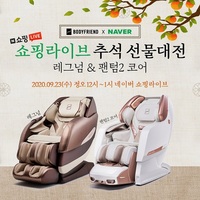바디프랜드가 23일 낮 12시부터 1시간 동안 네이버 쇼핑 라이브를 통해 추석 선물대전 특가 판매 방송에 나선다고 22일 밝혔다.바디프랜드는 네이버 쇼핑 라이브 채널과 함께 진행하는 이번 방송에서 팬텀2 코어, 레그넘 안마의자 2종을 혜택가에 판매한다. 추석을 맞아 구