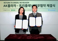AK플라자가 지난 12일 미세먼지 저감을 위한 숲 조성 캠페인에 앞장서는 사회적 기업 ‘트리플래닛’과 업무협약식을 체결했다고 13일 밝혔다. 이날 협약식에는 AK플라자 마케팅전략 본부장 이한나 상무와 트리플래닛 김형수 대표가 참석한 가운데 AK플라자 본사에서 진행됐다.