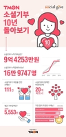 티몬은 올해로 10년차를 맞은 자사 사회공헌 프로그램 '소셜기부'가 올해 6년 연속 기부금 1억원을 넘어서 누적 기부금이 9억4253만원인 것으로 집계됐다고 30일 밝혔다.티몬에서 월 1회씩 진행하고 있는 소셜기부는 티몬의 창립해인 2010년부터 이어져오고 있는 사회공