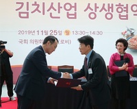 풀무원이 정부와 국회, 김치단체 등과 손잡고 김치시장 활성화 및 대·중소기업간 상생협력에 나섰다.풀무원식품은 25일 서울 여의도 국회 의원회관에서 열린 '김치산업 상생협약식'에서 국회 농림축산식품해양수산위원회(이하 국회 농해수위), 농림축산식품부, 동반성장위원회, 대한