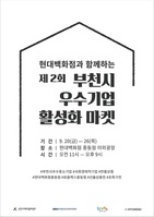 현대백화점은 오는 26일까지 중동점 유플렉스 1층 야외 광장에서 부천시와 함께 '우수 중소기업 활성화 마켓'을 연다고 20일 밝혔다. 이번 행사는 국내 우수 중소기업의 제품 홍보와 판로 확대를 위해 마련됐다. 행사에는 부천시에 기반을 둔 지역 우수 중소기업(1