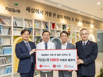 롯데홈쇼핑이 지난 13일 서울 서초구 내곡동에 위치한 국내 유일의 발달장애 아동 재활전문 공공병원인 서울특별시 어린이병원에 ‘작은도서관’ 100호 특별관을 개관했다고 16일 밝혔다.이날 행사에는 롯데홈쇼핑 김재겸 대표, 김광재 ESG위원장, 이동규 커뮤니케이션부문장,