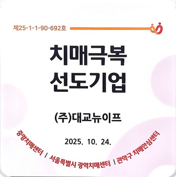 대교뉴이프, 중앙치매센터 '치매극복선도기업' 지정