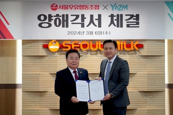 서울우유협동조합이 급성장하는 그릭요거트 시장 트렌드에 맞춰 그릭요거트 전문브랜드 요즘(YOZM)과 업무협약을 체결했다고 7일 밝혔다.지난 6일 서울우유협동조합 본사에서 진행된 협약식에는 서울우유 문진섭 조합장, 요즘 박경수 대표 외 주요 관계자들이 참석했다. 서울우유는