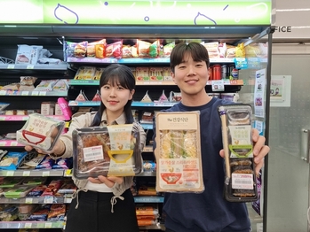 ◇ CU, 생분해성 도시락 용기 사용 ‘더건강식단’ 간편식 출시CU는 이달 15일 포만감을 주는 통곡물과 닭가슴살 등을 활용해 저당, 고단백 콘셉트의 더건강식단을 새롭게 출시했다. 해당 상품들은 도시락, 주먹밥, 김밥, 샌드위치 등 5종으로 구성돼 고객의 선택지를 넓혔
