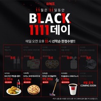 위메프는 오는 8일부터 10일까지 '블랙1111'데이 이벤트의 일환으로 도미노 포테이토피자 M(1111원·5000개), 다이슨V8 앱솔루트(11만1111원·100개), 투썸플레이스 아메리카노(1111원·2만개)를 할인 판매한다고 7일 밝혔다.1일부터 매일 오전·오후 1