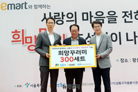 이마트가 추석을 일주일 앞두고 서울 왕십리광장에서 '희망마차 추석맞이 나눔 한마당'을 열었다. 이날 행사에서 이마트는 성동구 관내 저소득층 어르신 300명을 초청해 5만원 상당의 노브랜드 생필품으로 이뤄진 '희망꾸러미'를 전달하고 초청 가수 축하 공연과 함께