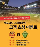 맥도날드는 ‘로날드 맥도날드 어린이 축구교실’ 참가자 35만 명 돌파를 기념해 오는 20일 서울 월드컵경기장에서 개최하는 FC서울과 전북현대의 K리그1 경기에서 ‘맥도날드 스페셜 데이’ 행사를 진행한다.이날 행사에는 아빠와 함께하는 축구교실 참가 가족과 이벤트를 통해