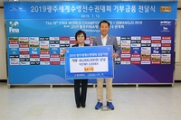 제너시스BBQ는 지난 12일부터 광주에서 개최되고 있는 전세계인의 수영 축제인 ‘광주 세계 수영선수권대회’의 성공적인 개최를 기원하며 국내외 홍보지원을 위해 4000만원을 지원한다. 이를 위해 12일 BBQ는 세계 수영선수권대회 조직위원회와 전달식을 가졌다.