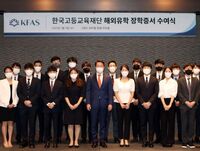최태원 SK그룹 회장이 해외유학을 떠나는 장학생들에게 지성을 갖춘 거목으로 자라 사회에 기여해 줄 것을 당부했다.한국고등교육재단 이사장인 최태원 SK 회장은 7일 서울 광진구 그랜드워커힐호텔에서 재단 지원으로 해외유학을 떠나는 장학생 29명에게 장학증서를 수여하며 이