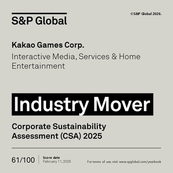 카카오게임즈, S&P 지속가능성 평가서 ‘인더스트리 무버’ 선정