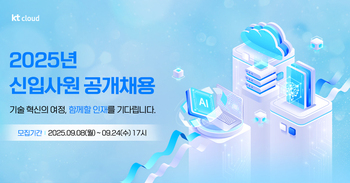 KT클라우드가 2025년 하반기 대졸 신입사원 공개 채용을 실시한다고 8일 밝혔다.약 200명의 경력직을 채용하며 조직을 확장해 온 KT클라우드는 AI·클라우드·데이터센터 분야에서 성장세를 이어가고 있다. 클라우드 네이티브 기반의 멀티 클라우드 사업자로 도약하고 있으며