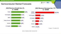 전 세계 반도체 시장이 최근 3년간 이어진 '슈퍼사이클'을 마치고 올해 역성장할 것이라는 우려가 나왔다. 다만 내년부터는 다시 회복해 견조한 성장을 이어갈 전망이다.1일 서울 코엑스에서 열린 '세미콘 코리아 2023' 기자간담회에서 이나 스크보르초바 국제반도체장비재료협