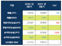 넥슨은 9일 자사의 2021년 3분기 연결 실적을 발표했다.매출은 전년동기 대비 4% 감소한 759억 엔(한화 약 7920억 원), 영업이익은 전년동기 대비 8% 증가한 298억 엔(한화 약 3109억 원), 당기순이익은 전년동기 대비 132% 증가한 379억 엔(한화