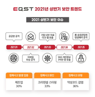 ADT캡스가 2021년도 상반기 보안 트렌드 보고서를 30일 발표했다. ADT캡스 인포섹 시큐디움 센터(Secudium Center)에서 추출한 통계 데이터를 바탕으로 분석한 상반기 보안 이슈와 가속화되고 있는 디지털 워크플레이스에서의 보안 위협 및 대응 전략 등이 핵