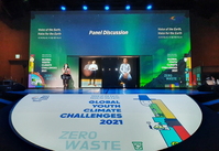 KT가 29일 서울 종로구 KT스퀘어에서 열린 '2021 글로벌 청년 기후환경 챌린지(2021 Global Youth Climate Challenge, GYCC)'와 '2021 P4G 서울 녹색미래 정상회의' 미래세대 세션의 타운홀 미팅을 원격으로 진행할 수 있도록 '
