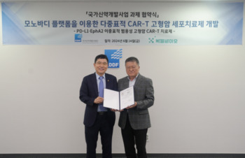 박셀바이오가 지난 14일 국가신약개발사업단과 고형암 다중표적 CAR-T세포(키메릭 항원 수용체 T세포) 연구개발 과제 수행 및 지원 협약을 체결했다고 17일 밝혔다.이번 협약으로 박셀바이오는 난치성 고형암에서 발현되는 PD-L1과 EphA2를 표적으로 하는 다중표적 C
