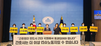"간호사는 더 이상 티슈노동자일 수 없다. 간호법안은 반드시 21대 국회에서 통과돼야 한다." 대한간호협회는 20일 국회에서 긴급 기자회견을 갖고 임기가 얼마 남지 않은 21대 국회에서 간호법안을 통과시켜줄 것을 여야에 촉구했다.이날 긴급 기자회견에 앞서 간호