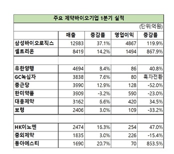 바이오 투톱 브레이크 없는 성장세 … '1조클럽' 제약사는 희비 갈려