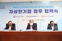 에너지 분야 스타트업을 육성하고 환경·사회·지배구조(ESG) 문화를 전국으로 확산하기 위해 한국전력이 자상한기업으로 나섰다.중소벤처기업부는 30일 한전아트센터에서 한국전력(사장 정승일), 한국전기산업진흥회(회장 구자균)와 함께 ‘에너지 신산업 혁신기업 육성 및 ESG