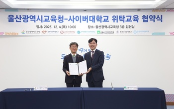 서울사이버대학교는 지난 4일 울산시교육청 3층 집현실에서 울산교육청과 산업체 위탁교육 협약을 맺었다고 5일 밝혔다.이번 협약에는 서울사이버대를 비롯해 사이버대학 6개교가 함께 참여했다.이번 협약에 따라 울산교육청 소속 공무원, 교육공무직원, 사립학교 교직원이 산업체 위