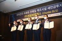 새만금개발청은 7일 전라북도, 군산시, ㈜천보 비엘에스와 함께 새만금 국가산업단지에 전기차 핵심부품인 이차전지 전해질 제조공장을 짓기로 투자협약을 맺었다고 밝혔다. 이날 협약식에는 이상율 천보 비엘에스 대표이사, 양충모 새만금개발청장, 송하진 전북도지사, 강임준 군산시
