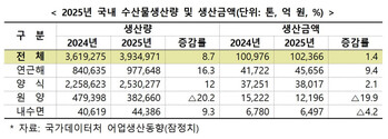 지난해 수산물 총생산 8.7%↑ … 연근해 16.3% 급증