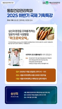 서울사이버대학교가 오는 22일 오후 3시 교내 B동 205호 대강의실에서 통합건강관리학과 주관으로 '2025 하반기 국제 기획특강'을 연다고 8일 밝혔다. 이번 특강은 사쿠라이 유코(櫻井裕子) 전임강사를 초청해 '심신과 환경을 조화롭게 하는 일본의 바른 식생활법 '마크