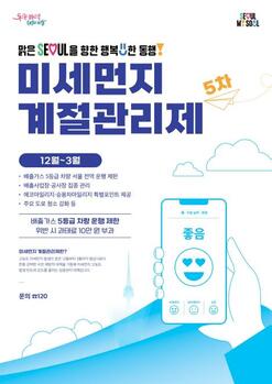 서울시가 고농도 미세먼지 발생이 잦은 3월까지 미세먼지 저감 대책인 '5차 미세먼지 계절관리제'를 시행한다. 서울시는 "(지난) 4차 계절관리제 시행을 통해 우수한 성과를 거뒀다"며 "시행 전과 비교해 초미세먼지 농도는 26% 개선됐으며 초미세먼지 좋음일수는