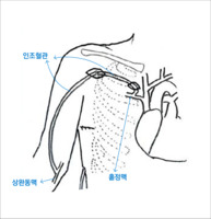 오랜 혈액투석으로 중심정맥까지 폐쇄된 혈액투석환자에게 적용할 새로운 대안이 만들어졌다.순천향대서울병원 흉부외과 박영우·외과 송단 교수팀은 흉골 절제술 없이 옆구리를 절개해 인조혈관으로 상완동맥과 흉곽내 홑정맥을 문합하는 상완동맥-홑정맥 경흉부 동정맥루(brachio-a