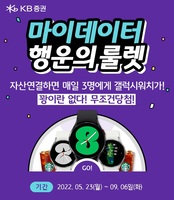KB증권은 오는 9월 6일까지 처음 자산을 연결하는 고객을 대상으로 마이데이터 행운의 룰렛 이벤트를 실시한다고 25일 밝혔다.마이데이터는 여러 금융기관에 흩어져 있는 내 자산을 직접 선택하고 연결해 주체적으로 자산을 관리할 수 있는 서비스다. KB증권의 마이데이터 서비