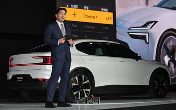 함종성 폴스타코리아 대표가 11일 오전 서울 용산구 그랜드하얏트에서 열린 스웨덴 프리미엄 전기차 브랜드 폴스타(Polestar) '2026 폴스타 미디어 데이(Polestar Media Day)'에서 신차 2종을 소개하고 있다. 폴스타 3(Polestar 3)