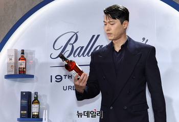 배우 현빈이 25일 오후 서울 성동구 언더시티에서 열린 한국 단독 한정판 '발렌타인 싱글몰트 글렌버기 16년 스몰배치 2' 출시 기념 행사에서 포즈를 취하고 있다.
