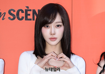 그룹 에스파 윈터가 19일 오후 서울 성동구 올리브영 N 성수에서 열린 미쟝센 '퍼펙트 세럼' 올리브영 N 성수 팝업 오픈 기념 포토콜 이벤트에서 포즈를 취하고 있다.