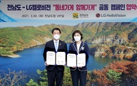 LG헬로비전이 전라남도와 지역경제 활성화 캠페인 공동 추진을 위한 업무 협약(MOU)을 체결했다고 30일 밝혔다.협약식은 김영록 전남도지사, 강명신 LG헬로비전 커뮤니티사업그룹장 상무 등 주요 관계자들이 참석한 가운데 전남도청에서 진행됐다. 광역지방자치단체가 LG헬로비