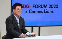 김민경 롯데지주 SCV 책임이 16일 오후 서울 마포구 서강대 가브리엘 스튜디오에서 뉴데일리경제가 주최한 'SDGs(지속가능발전목표)포럼 2020 X 칸 라이언즈' 페스티벌에서 롯데그룹이 추구하는 'mom편한 세상' 관련 인터뷰를 갖고 있다. 뉴데일리경제는 칸