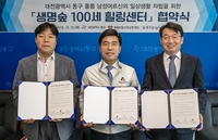 생명보험사회공헌재단은 10일 대전광역시 동구청장실에서 저소득 남성 홀몸 어르신의 일상생활 자립 역량 강화를 지원하는 ‘생명숲 100세 힐링센터’ 운영사업 업무협약을 체결했다. 이날 업무협약식에는 황인호 대전광역시 동구청장, 생명보험재단 조경연 상임이사 등이 참석했다.