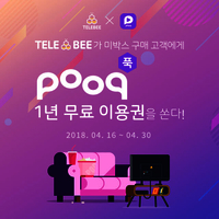 KT스카이라이프가 OTT 상품 '텔레비(TELEBEE)'의 'pooq' 서비스 론칭을 기념해 텔레비 신규 가입자에게 pooq 1년 무료 이용권을 제공한다고 16일 밝혔다.pooq은 KBS, SBS, MBC가 함께 투자해 설립한 콘텐츠연합플랫폼으로, 인터넷 기