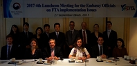 관세청은 27일 서울에서 한-EU 자유무역협정(이하 FTA)의 이행과 관련, 주한 EU 회원국 대사관 및 EU 경제 유관기관 등의 FTA 관계관과 간담회를 가졌다. 관세청은 FTA 체결국과의 세관 분야 이행상 문제점을 개선하고 FTA 이행을 원활히 하기 위해,