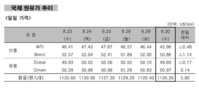 국제유가가 미국 정제시설 가동 중단 여파의 지속으로 하락했다. 30일(현지시간) WTI는 전일대비 배럴당 0.48달러 하락한 45.96달러, Brent는 전일대비 배럴당 1.14달러 하락한 50.86달러, Dubai는 전일대비 배럴당 0.17달러 하락