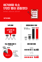 종합숙박 O2O(온·오프라인 연계) 여기어때는 숙박시설 사용자 후기 170만건을 확보했다고 25일 밝혔다. 서비스 출시 3년여 만으로, 국내 최대 규모 리뷰 데이터 수다. 2014년 여기어때에 등록된 숙소 리뷰는 3만건에 그쳤다. 이듬해에는 이보다
