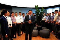 '잠실시대 활짝' 신동빈 롯데 회장, 롯데월드타워 18층 집무실로 첫 출근
