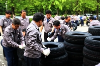 금호타이어 임직원들이 타이어 절단식을 통해 경영정상화를 위한 결의를 다졌다.금호타이어는 지난 28일 오후 광주공장에서 이한섭 사장을 비롯한 임직원 100여 명이 참석한 가운데 '타이어 절단식'을 실시했다고 30일 밝혔다.이날 행사에 참석한 임직원들은 타이어 5