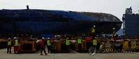 세월호 선체 무게의 고무줄 논란 속에 해양수산부가 예정대로 6일 세월호 육상 거치를 시도하기로 했다.선체를 떠받칠 대용량 모듈 트랜스포터(MT)를 투입하는 대안도 준비하고 있다. 이 경우 육상으로 이송을 끝내는 시점은 오는 10일이 될 전망이다.일각에서는 해수부가 조급