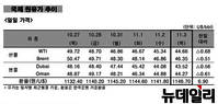 원유(crude oil) 가치가 11월 들어 하락세를 타고 있다. 지난달 WTI(West Texas Intermediate), Brent, Dubai 원유 등 3대 유종의 평균 가격이 배럴(barrel)당 50달러를 넘었지만 3일(현지시간) 현재 3대 유종의 평균 가격